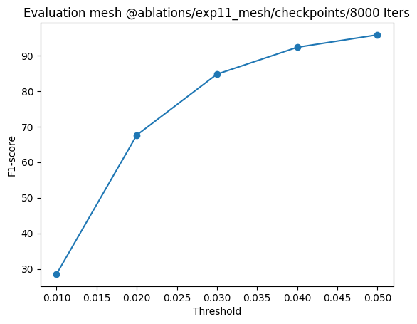 models, voxels show a lower F1 score as compared to meshes and pointclouds.